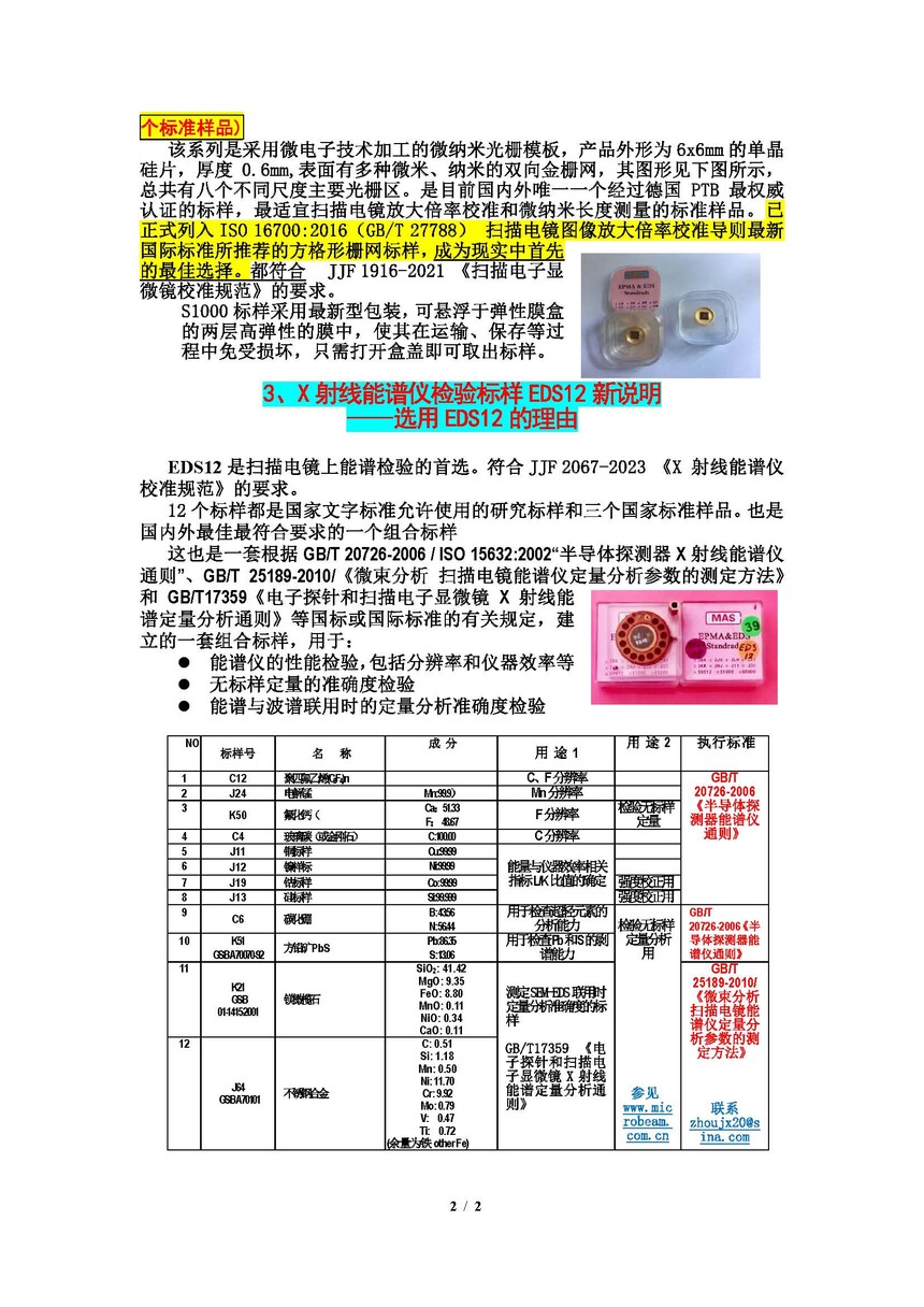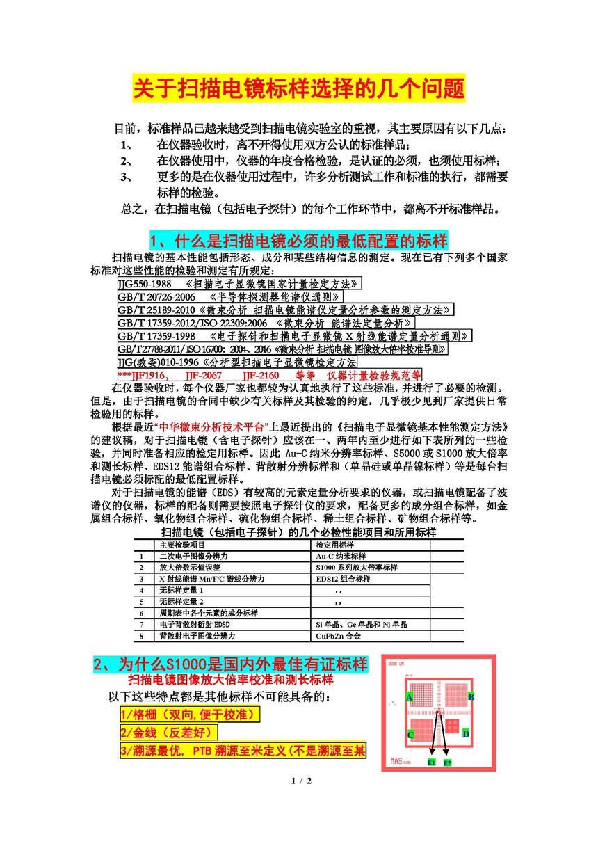 关于扫描电镜标样选择的几个问题
